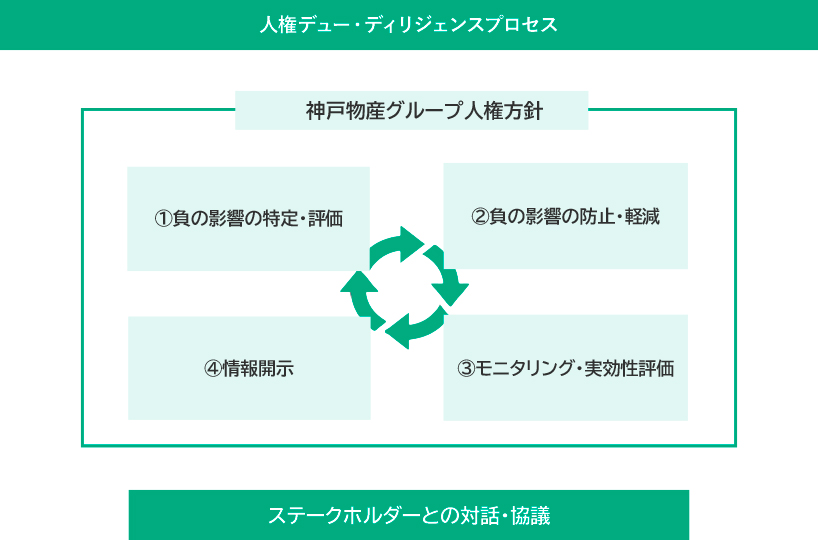 神戸物産グループは国際連合の「ビジネスと人権に関する指導原則」に則り、人権デュー・ディリジェンスを継続的に実施していきます。サプライチェーンにおける人権への負の影響を特定・評価し、その防止と軽減、モニタリングと実効性評価、情報開示、ステークホルダーとのコミュニケーションを通じて、人権の尊重と持続可能なサプライチェーン構築に向けて取り組んでいきます。