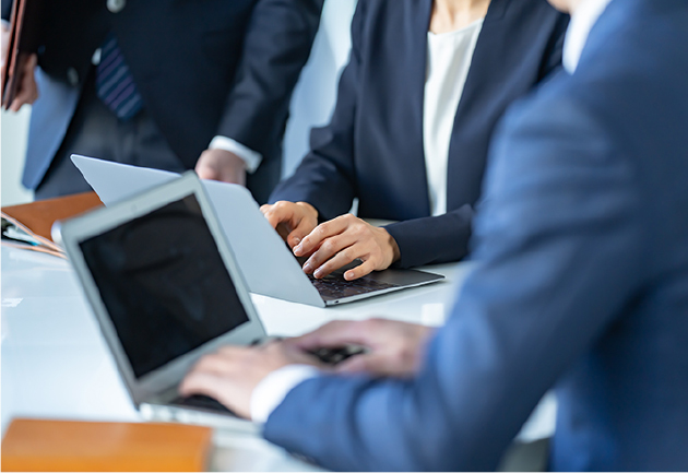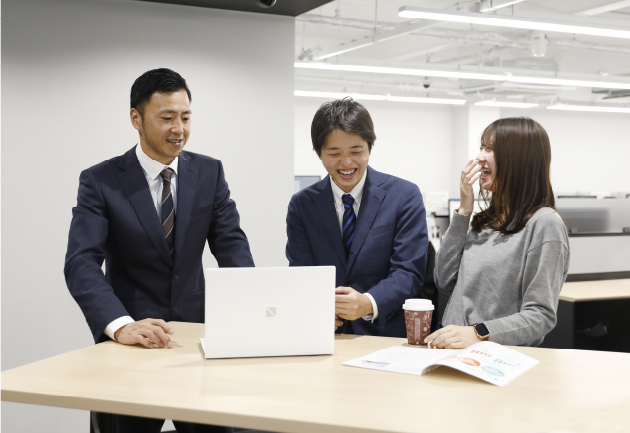 会社組織の運営に関わる事柄を総合的に行う縁の下の力持ちといった役回り。就業規則の制定・変更、社会保険関係の手続き、人財確保、契約に関する社内調整をはじめ、社員が業務を円滑に進められるように社内環境を整えています。